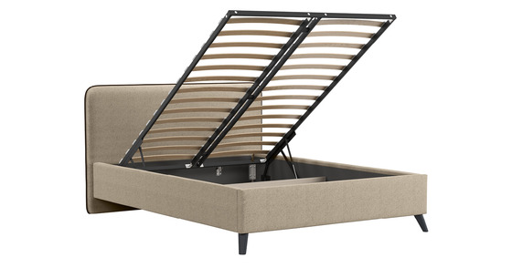 Кровать Миа 160 рогожка бежево-коричневый, кант желтовато-коричневый с ортопедическим основанием и подъемным механизмом