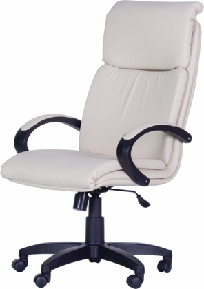Кресло на колесах Стиль ультра кожа бежевый крестовина пластик, подлокотники пластик, механизм качания