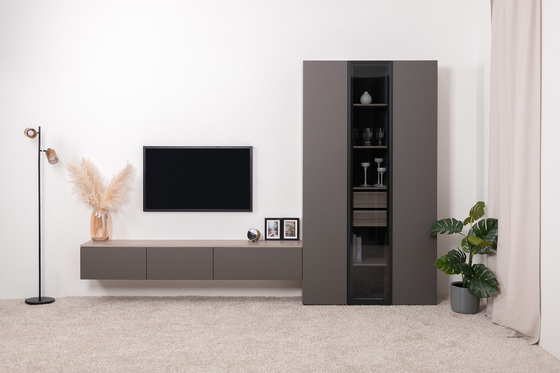 Тумба под ТВ Роквуд 16.54.02 Эмили Блаш U9135, Графит мягкая шагрень 2998 ПВХ, напольная/навесная установка