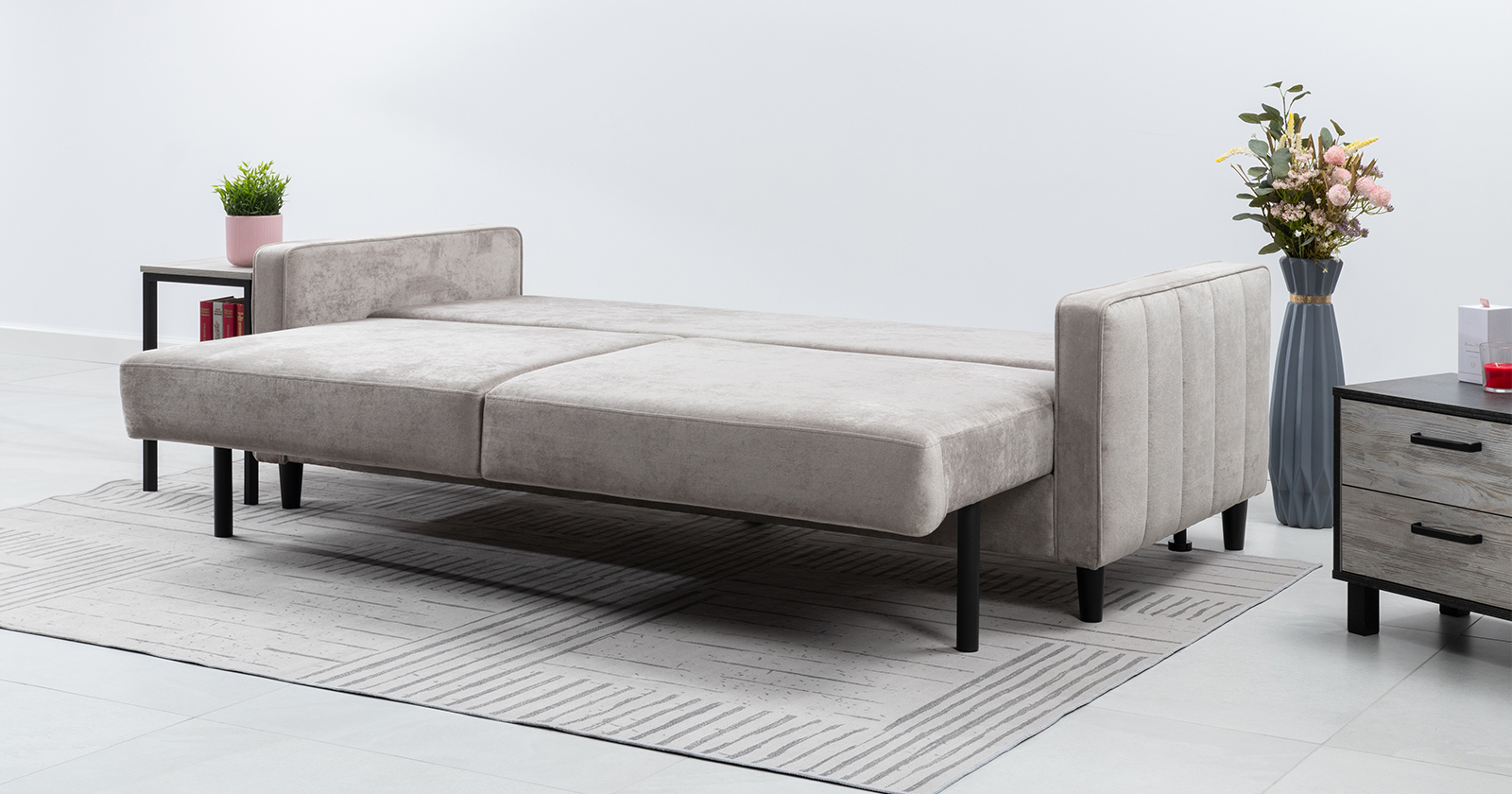 Объемные подушки дивана обеспечивают эргономичную посадку, а ровное спальное место - полноценный ночной отдых.