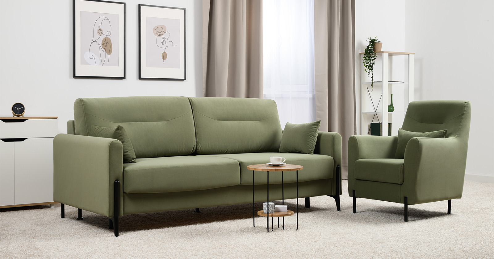 Барселона - современный диван, стиль которого удачно подчеркнут элегантными металлическими опорами.