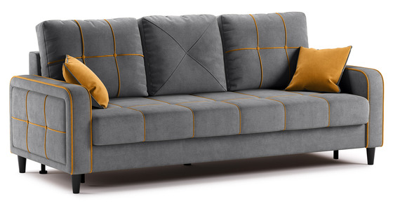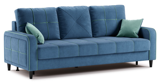 Посадочная и спальная зоны при раскладывании равны, что обеспечивает хороший сон. Механизм трансформации - книжка. Раскладной диван представляет больше возможностей для обустройства интерьера. Черные металлические ножки дивана высотой 160 мм позволят использовать его в интерьере лофт.