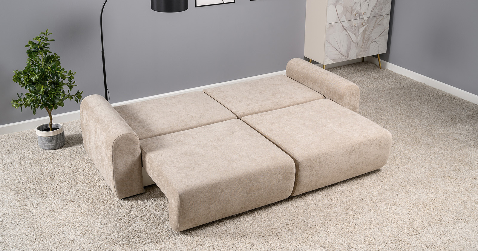 Диван-кровать угловой Тэдди 1502 композиция 3, букле Pique 006 бежевый, модульная система, сборка на любую сторону