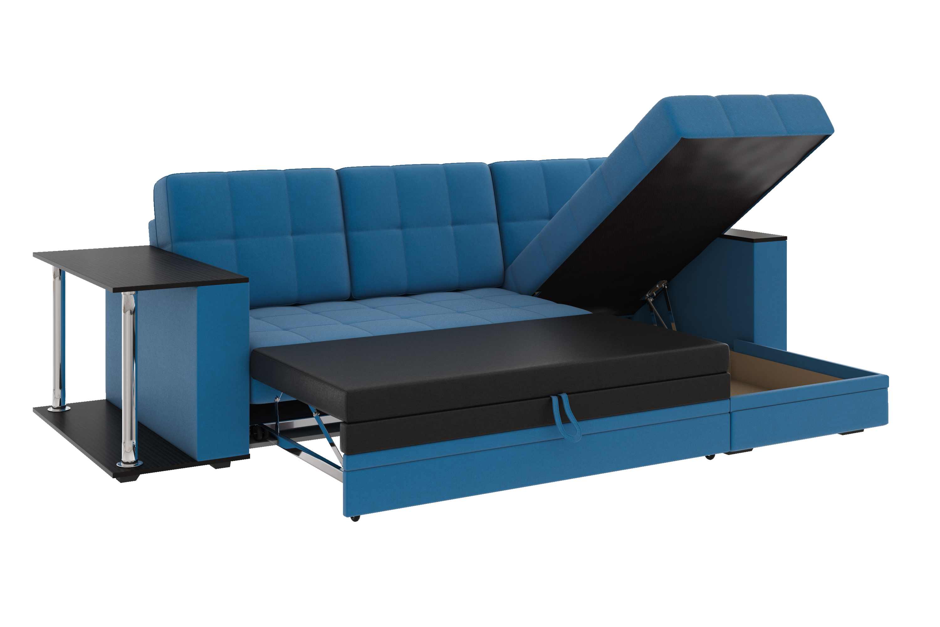 Диван-кровать угловой Атлант со столиком велюр синий со спальным местом (сборка на любую сторону)