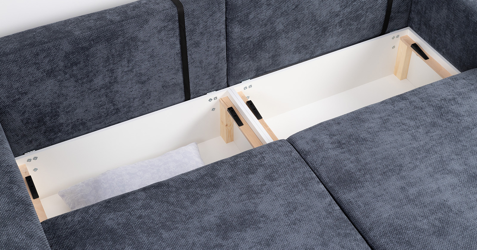 «Компоновка 5» арт. 713 состоит из: оттоманки арт. ТО 713, дивана арт. ТД 713, узкого подлокотника арт. ТБ 713, широкого подлокотника с ящиком арт. ТБ 713, двух приспинных подушек арт. 713 и двух декоративных подушек арт. 713.