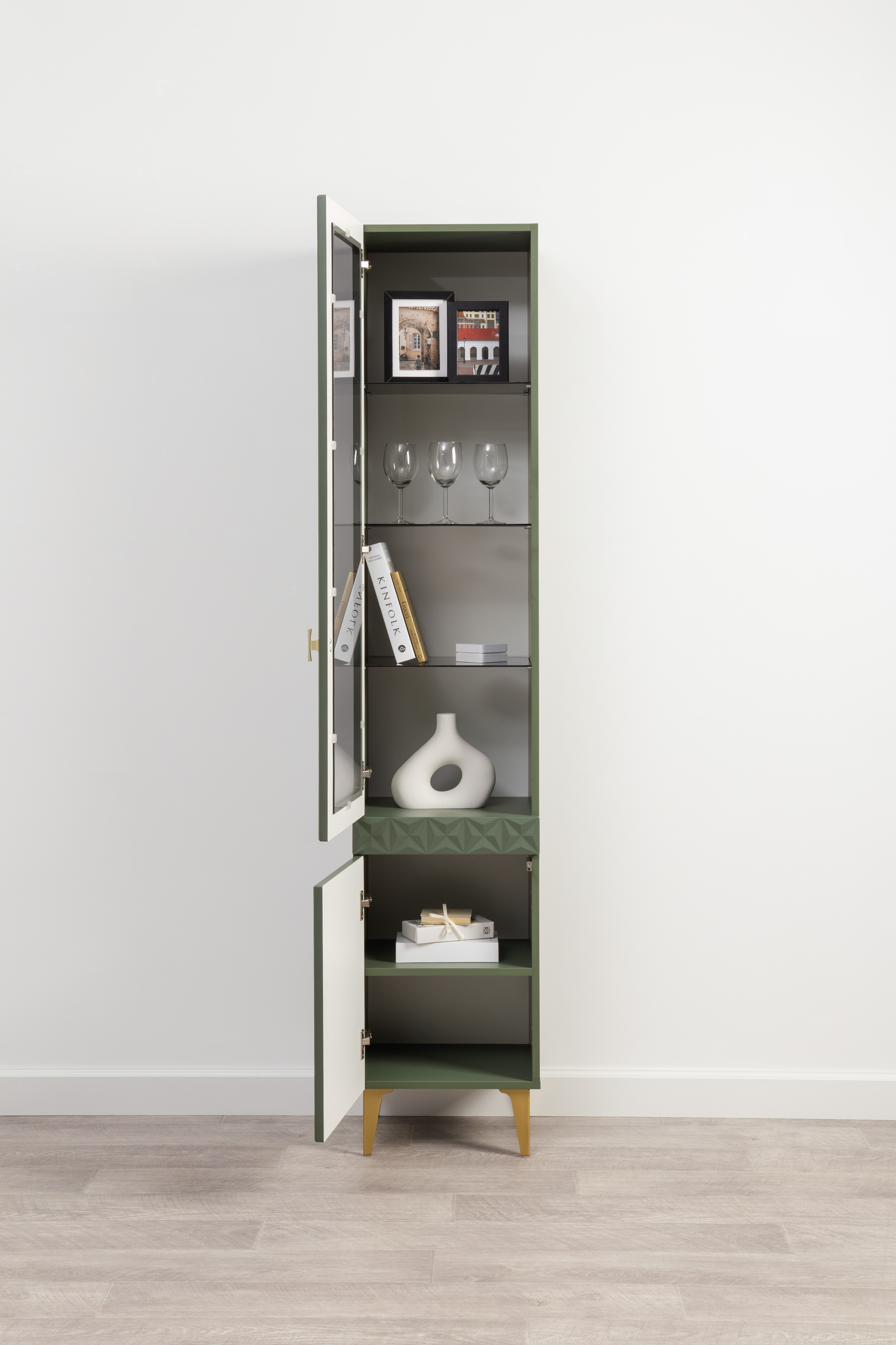 В коллекции представлены три типа витрин с тонированным закалённым стеклом, которые придают пространству лёгкость и свет. «Марион» — идеальное сочетание традиций и актуального дизайна в каждой детали.