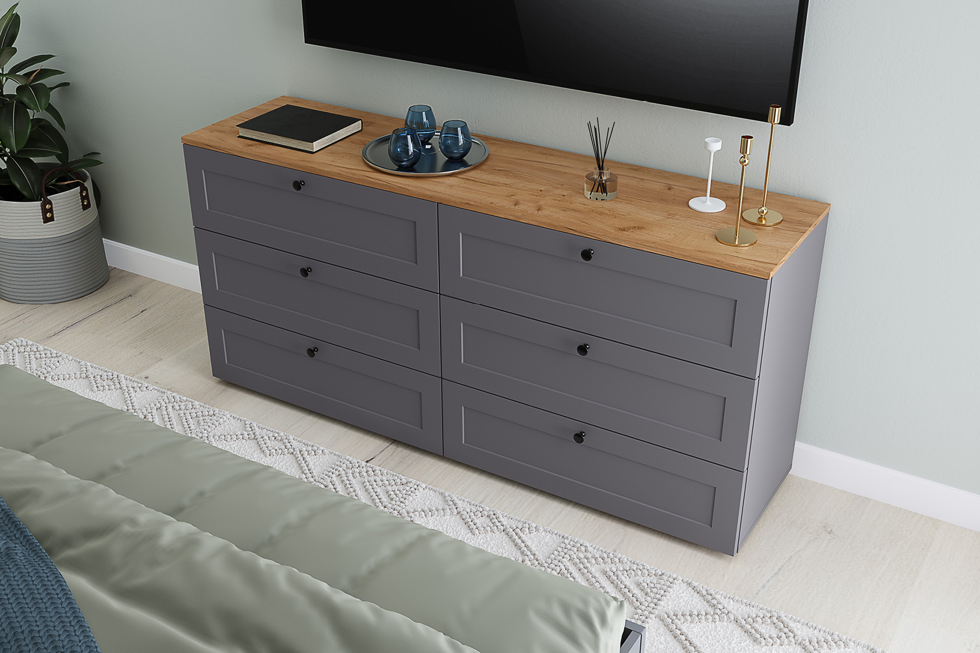 Комод Остин 16.221 серый графит, дуб вотан, серый графит ПВХ