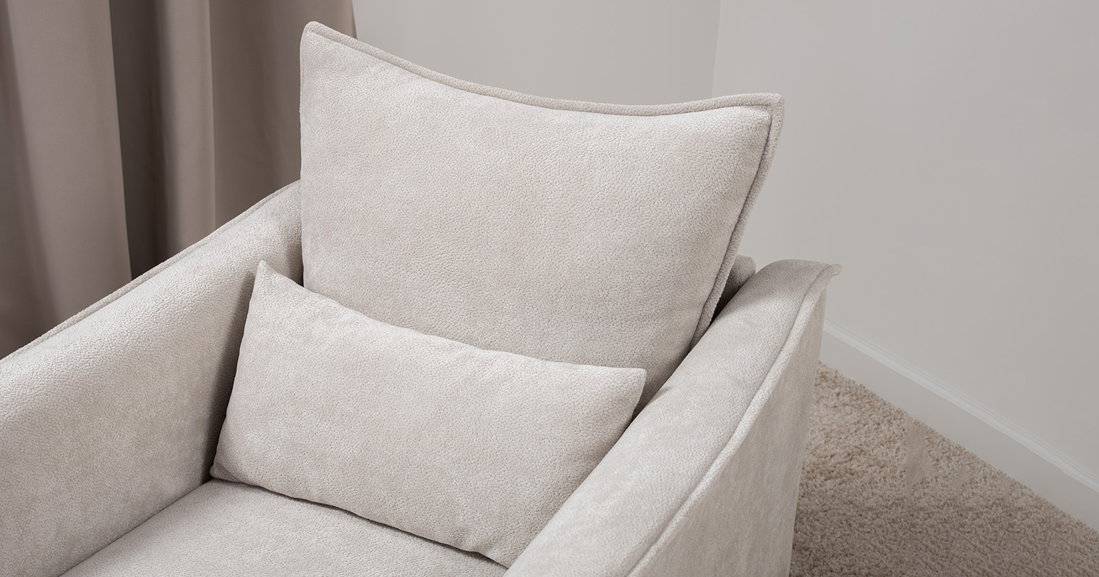 Изогнутые подлокотники в форме лепестков придают коллекции изысканный и элегантный вид, а дополнительные декоративные подушки обеспечат поддержку поясницы и помогут уютно устроиться на кресле.