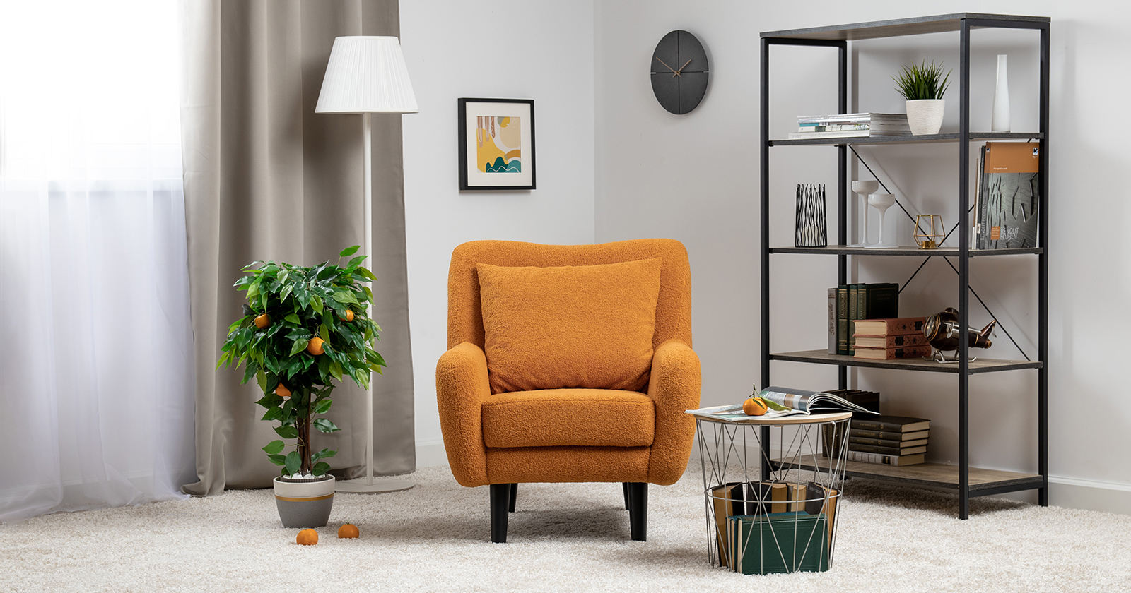 Кресло Шон станет вашим любимым местом для отдыха. Мягкое кресло с удобной спинкой даст вам расслабиться и отдохнуть. Благодаря небольшим размерам кресло подходит для многих современных квартир-студий или небольших комнат. Ткань букле делает кресло особенно уютным и мягким. Приспинная подушка в цвете кресла.