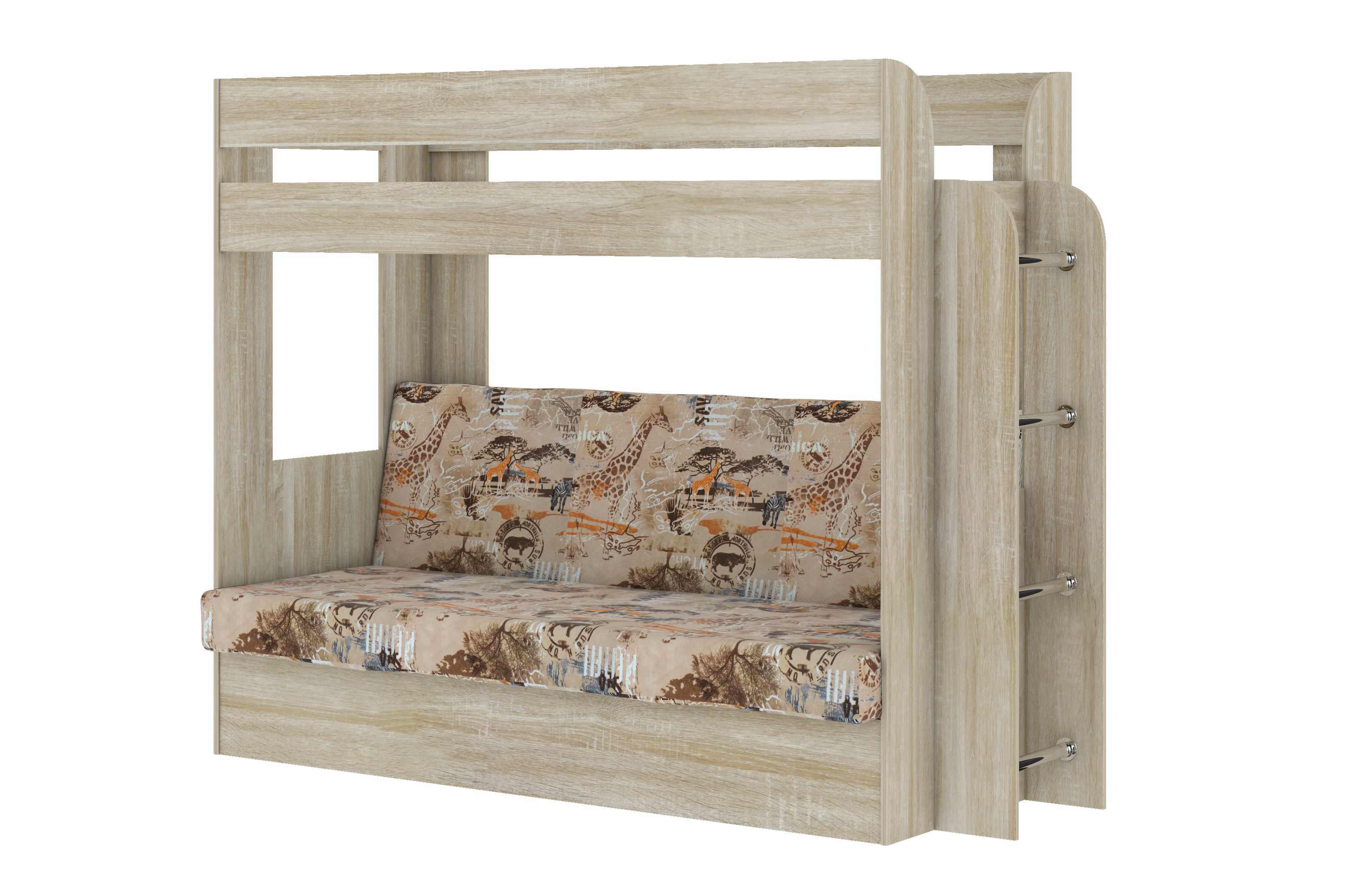 Кровать детская двухъярусная Карамель 75 Дуб Сонома, диван - велюр Савана (сборка на любую сторону) спальное место верх 80х190, низ 120х185