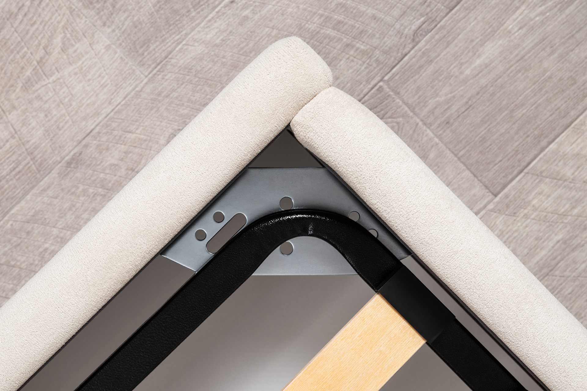 Кровать Марион — это идеальное сочетание стиля и комфорта. Элегантное изголовье оформлено стежкой в виде классической каретной стяжки, украшенной декоративными пуговицами, что придаёт изделию выразительный и утончённый вид. По всему периметру кровати проходит аккуратный валик, подчеркивающий геометрию и завершённость формы.