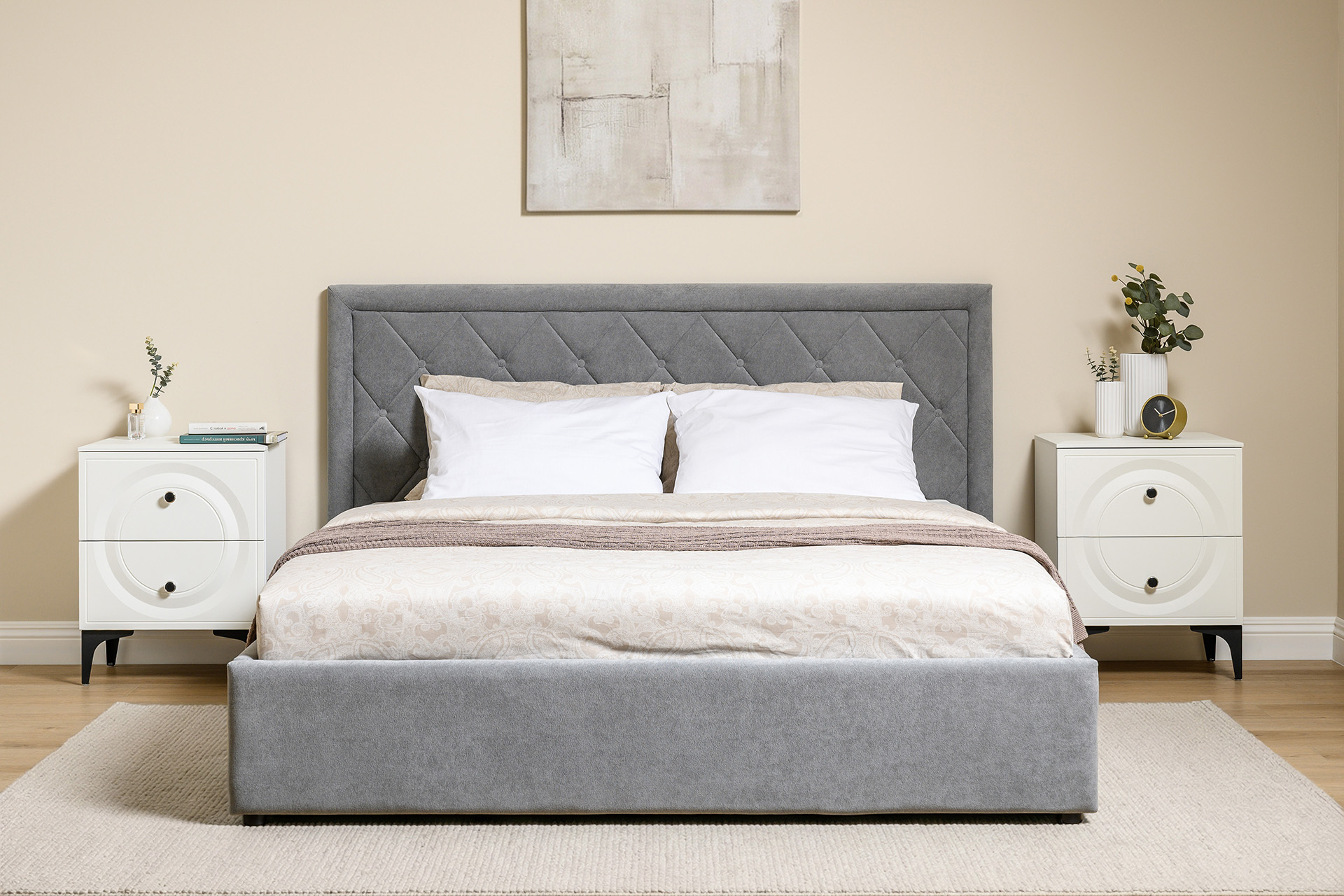 Кровать Марион 160 велюр OCEAN 023 серый с ортопедическим основанием и подъемным механизмом (спальное место 160 х 200)