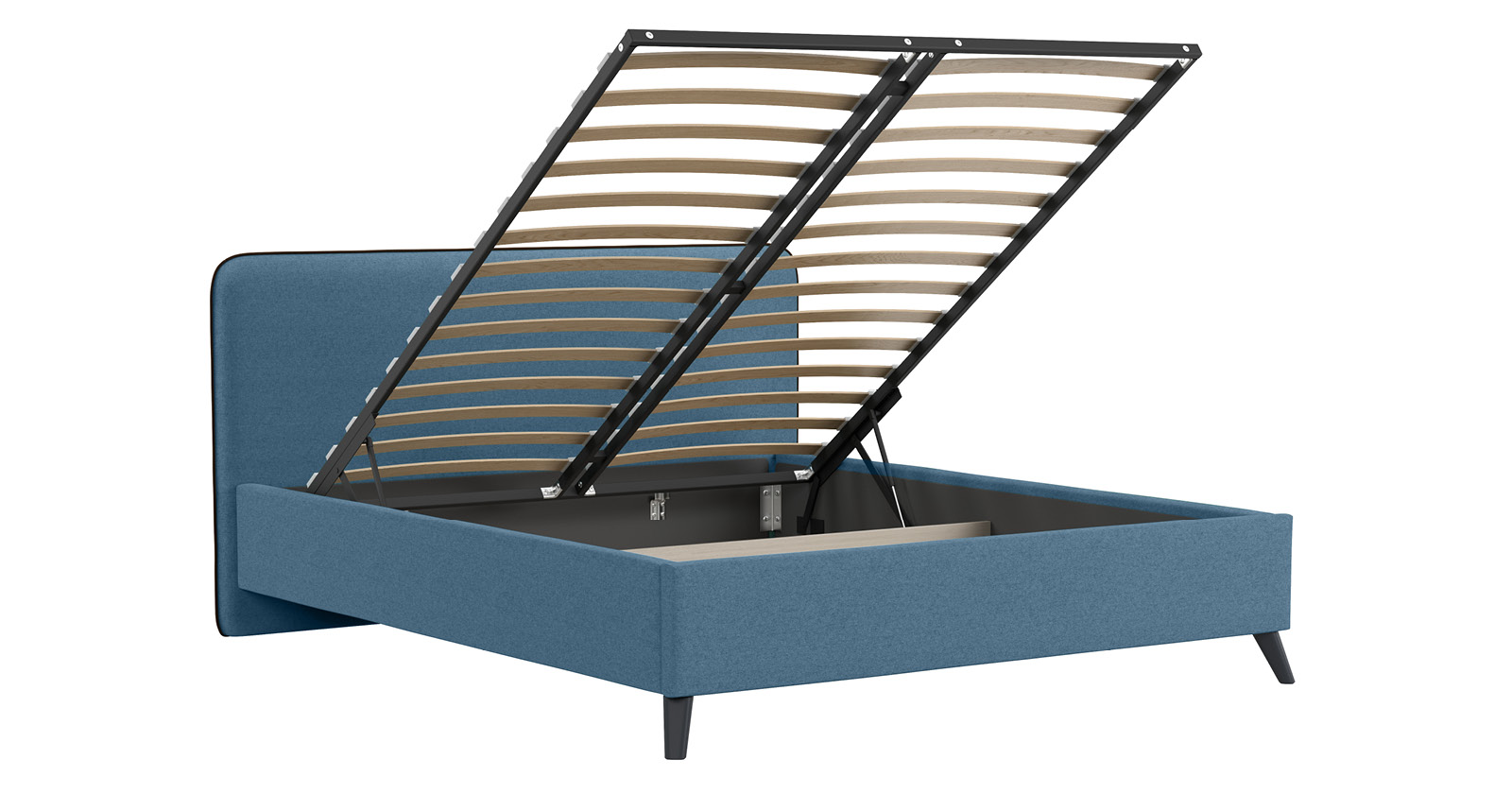 Кровать Миа 180 светло-синий, кант желтовато-коричневый с ортопедическим основанием и подъемным механизмом
