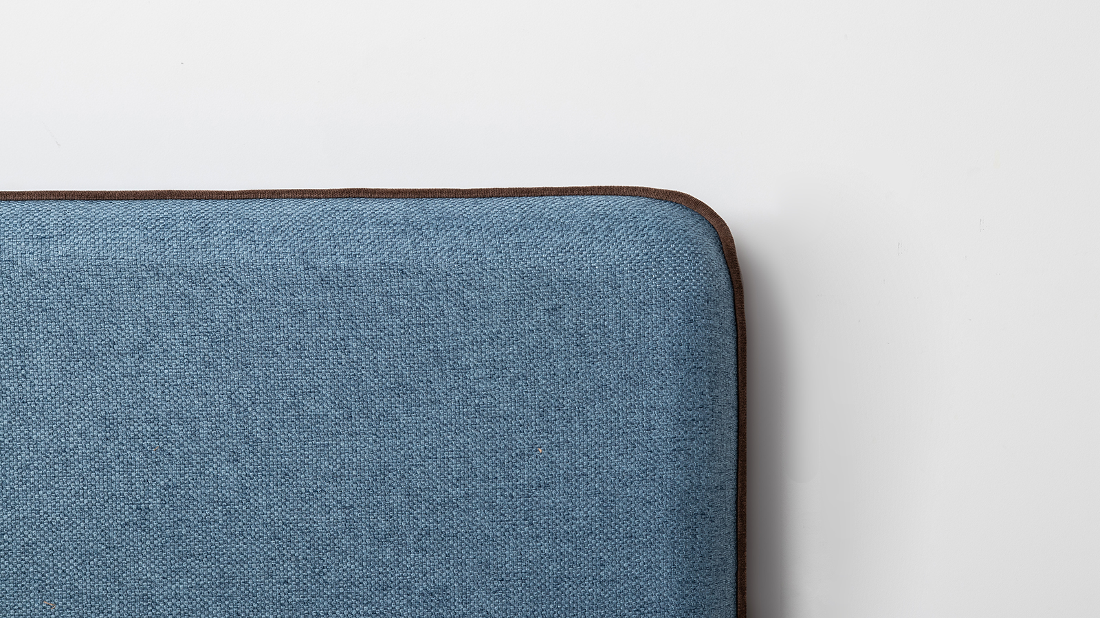 Cкругленный торец изголовья оформлен контрастным кантом.