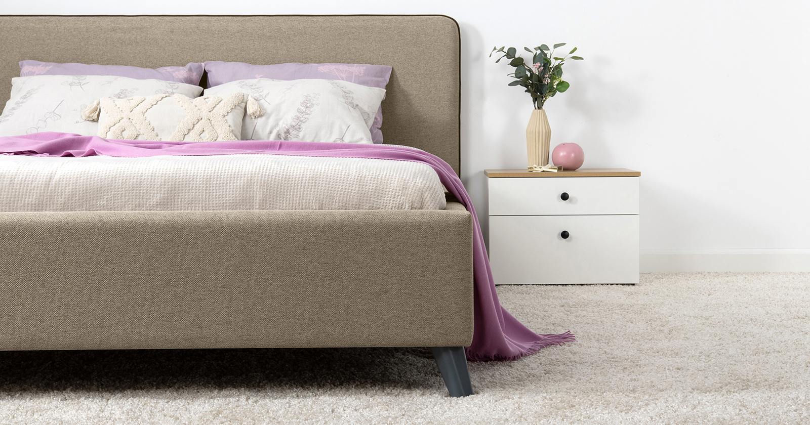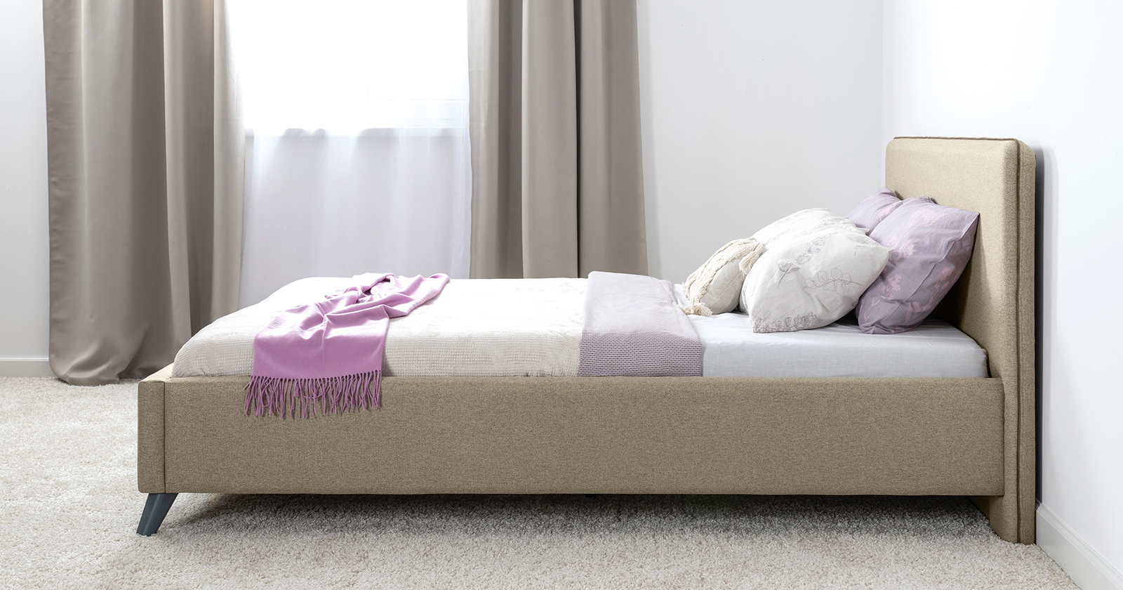 Лаконичный дизайн, гладкая и приятная на ощупь рогожка, широкий выбор пастельных оттенков, высокие опоры — модная кровать МИА порадует сторонников скандинавского стиля.