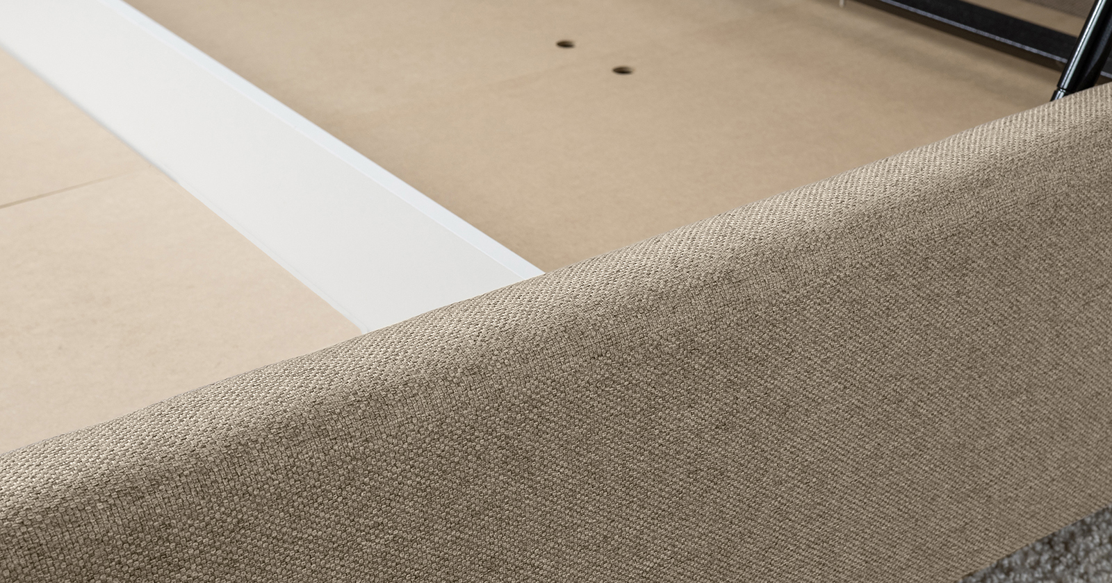 Cкругленный торец изголовья оформлен контрастным кантом.