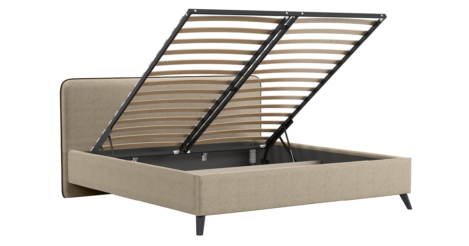 Кровать Миа 160 рогожка светло-бежевый, кант желтовато-коричневый с ортопедическим основанием и подъемным механизмом