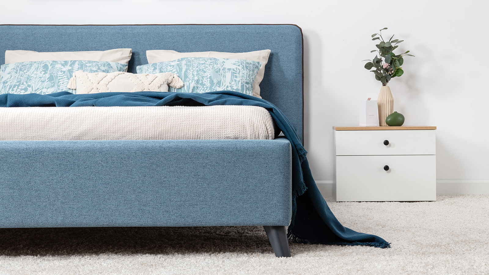 Лаконичный дизайн, гладкая и приятная на ощупь рогожка, широкий выбор пастельных оттенков, высокие опоры — модная кровать МИА порадует сторонников скандинавского стиля.
