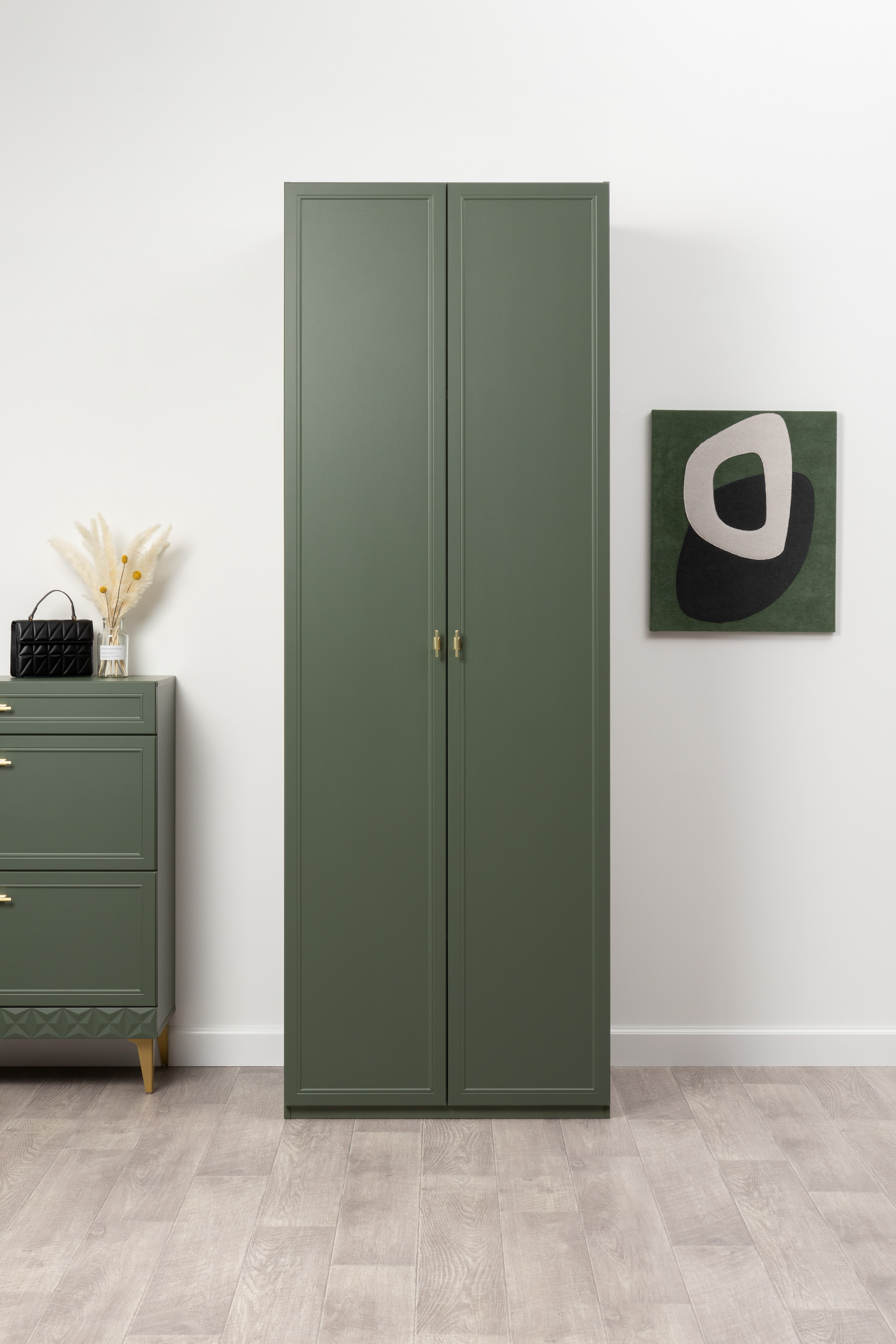 Шкаф двустворчатый Марион 16.340.02 дымчатый зеленый K521, олива шагрень AG 1050 ПВХ