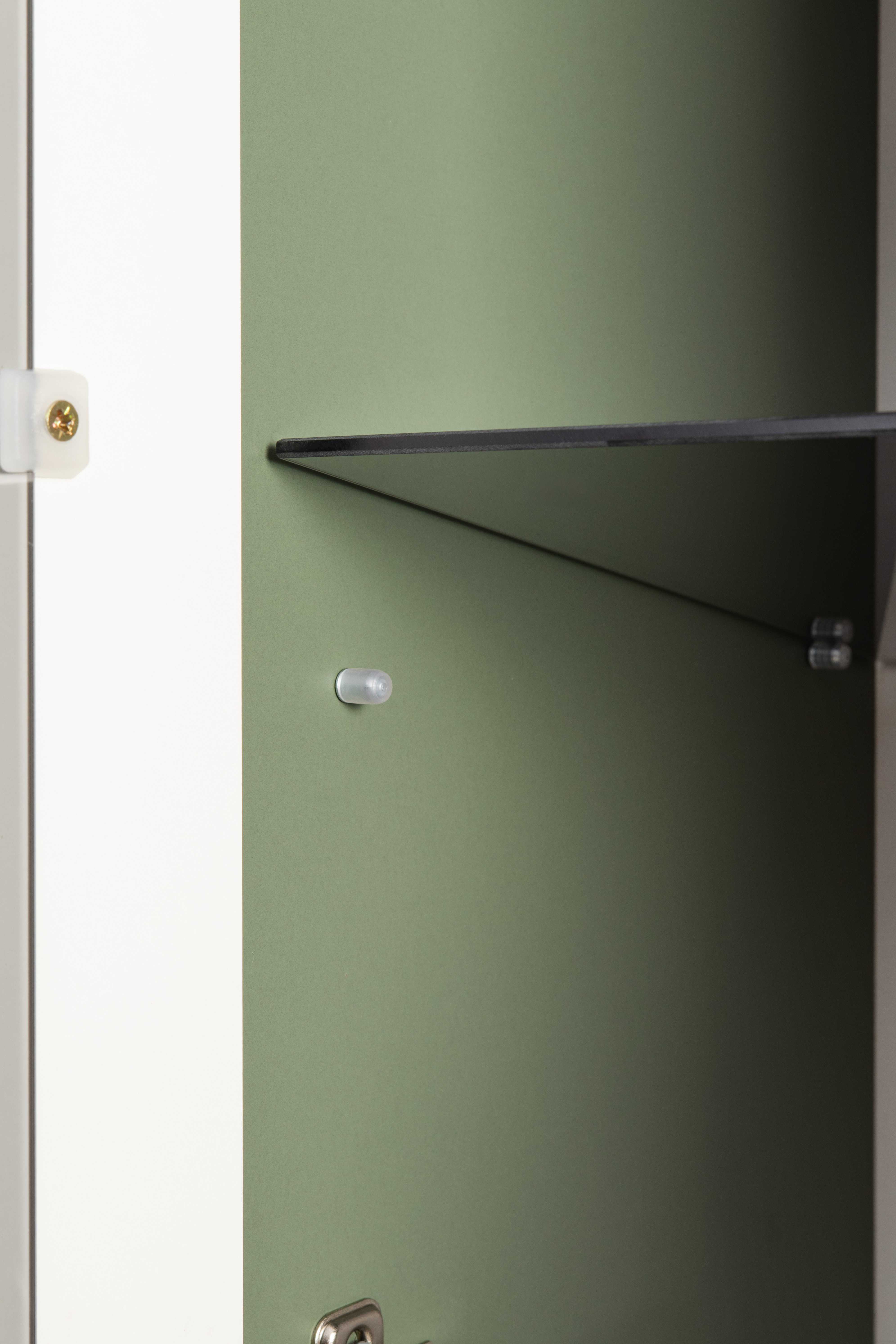 Изящные линии, глубокая фрезеровка фасадов из МДФ и благородные оттенки. Утончённая «Слоновая кость» и изысканная «Олива Шагрень» с глубоким зелёным тоном — создают атмосферу уюта, тепла и благородства. Металлические ручки и опоры золотого цвета придают мебели утончённый блеск, а петли и направляющие с доводчиками обеспечивают плавное и бесшумное закрытие фасадов.