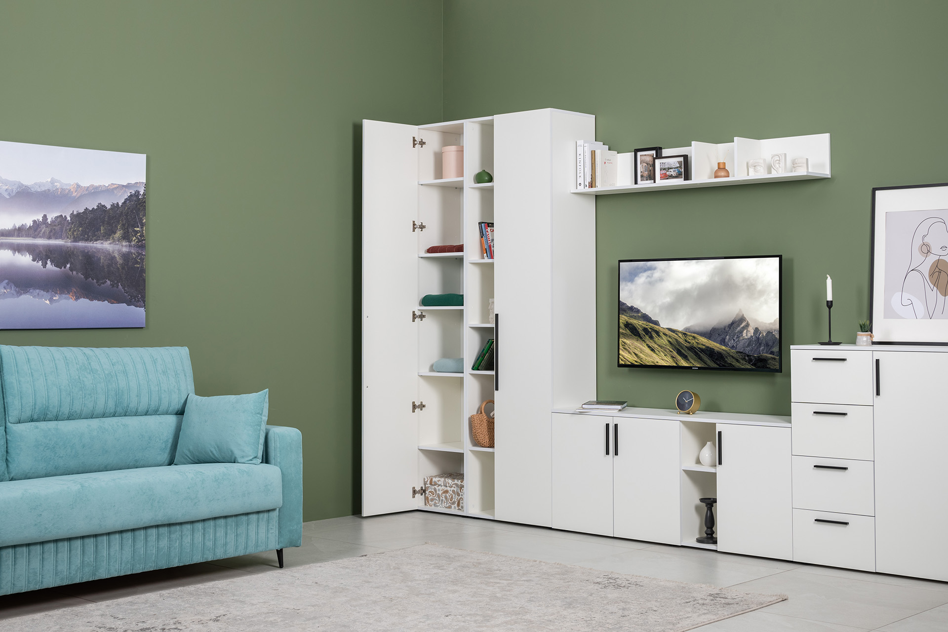 Гостиная Эйр доступна в двух цветовых решениях: белый и графит.