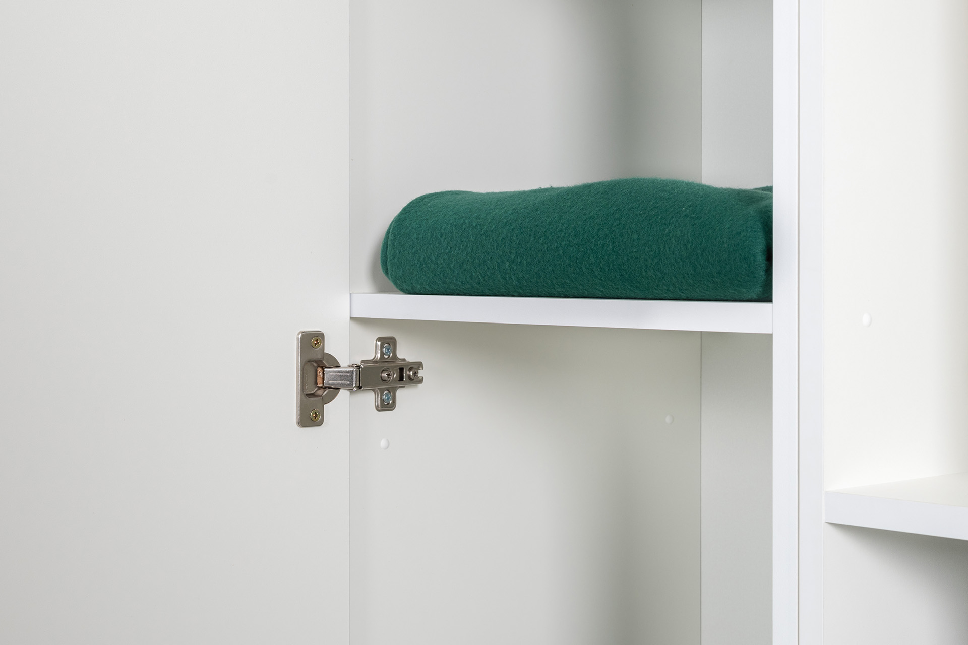 Модули универсальны и сочетаются между собой. Открытые и закрытые ниши для хранения, защитные пластиковые демпферы, съемные полки, направляющие полного выдвижения в ящиках – комфорт продуман до мелочей.