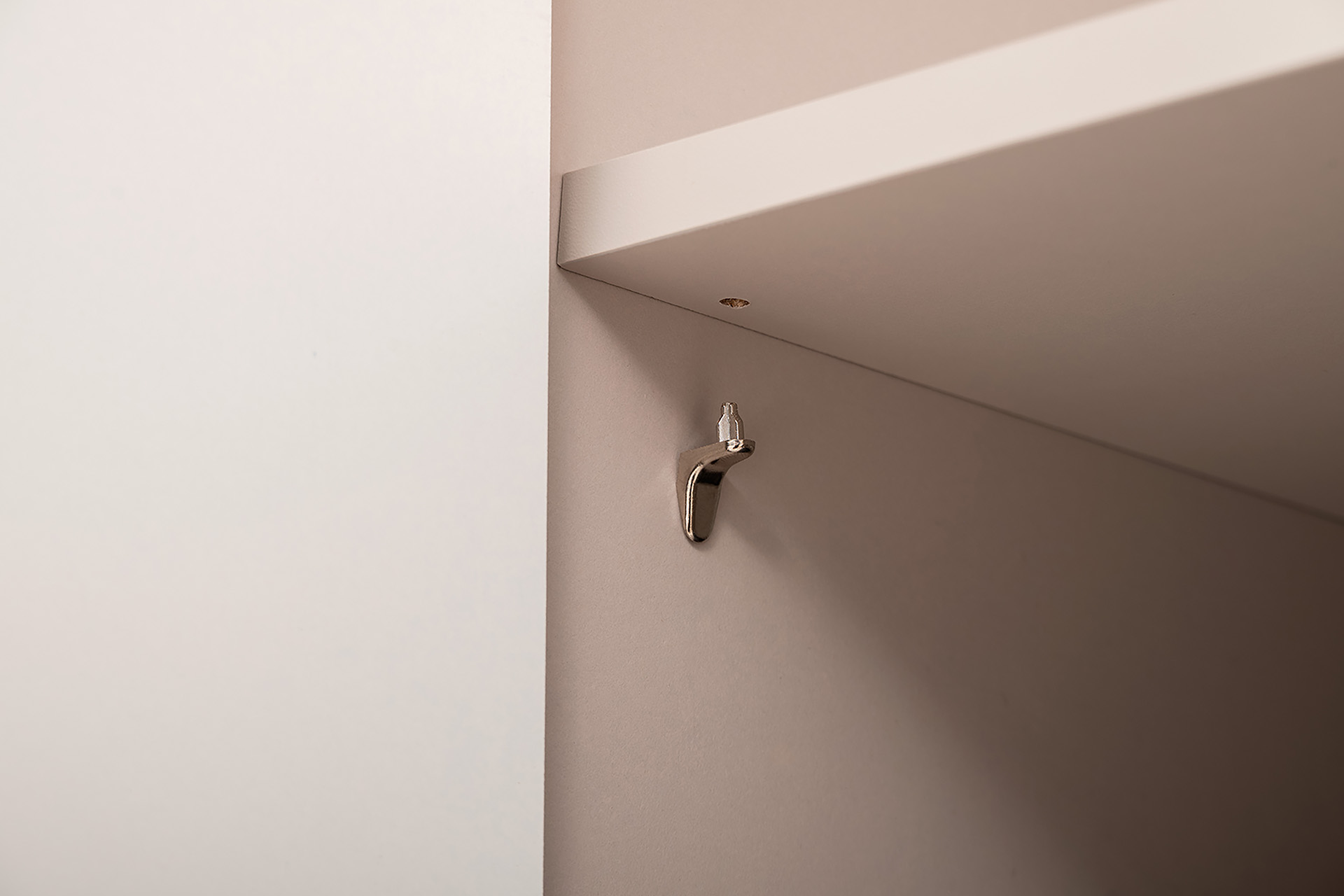 Петли с доводчиками, полное выдвижение ящиков, выдвижная штанга в шкафу для одежды и съемные полки делают использование максимально комфортным.