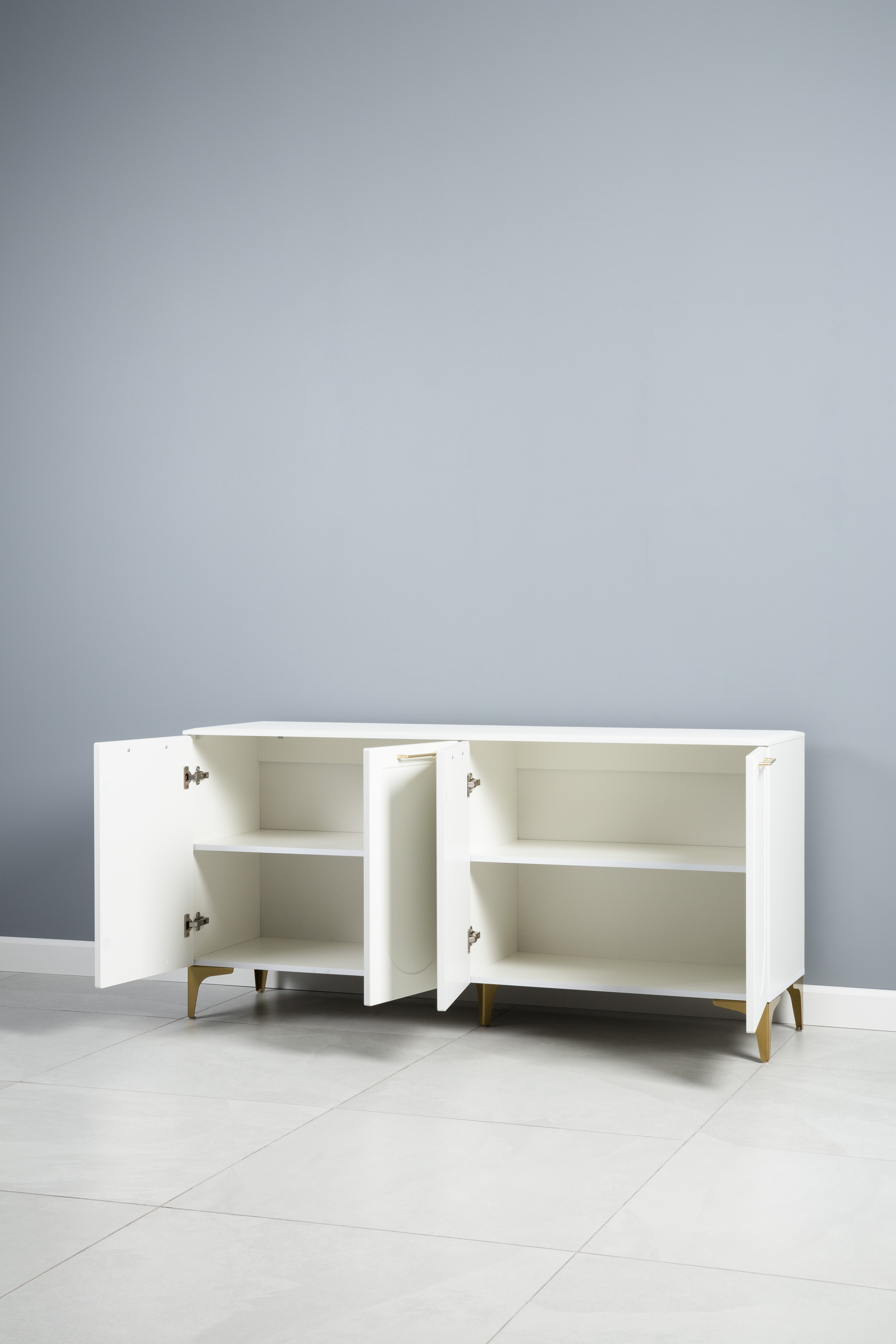Тумба под ТВ в гостиную Спейс 13.64 белый премиум, белый глянец ПВХ