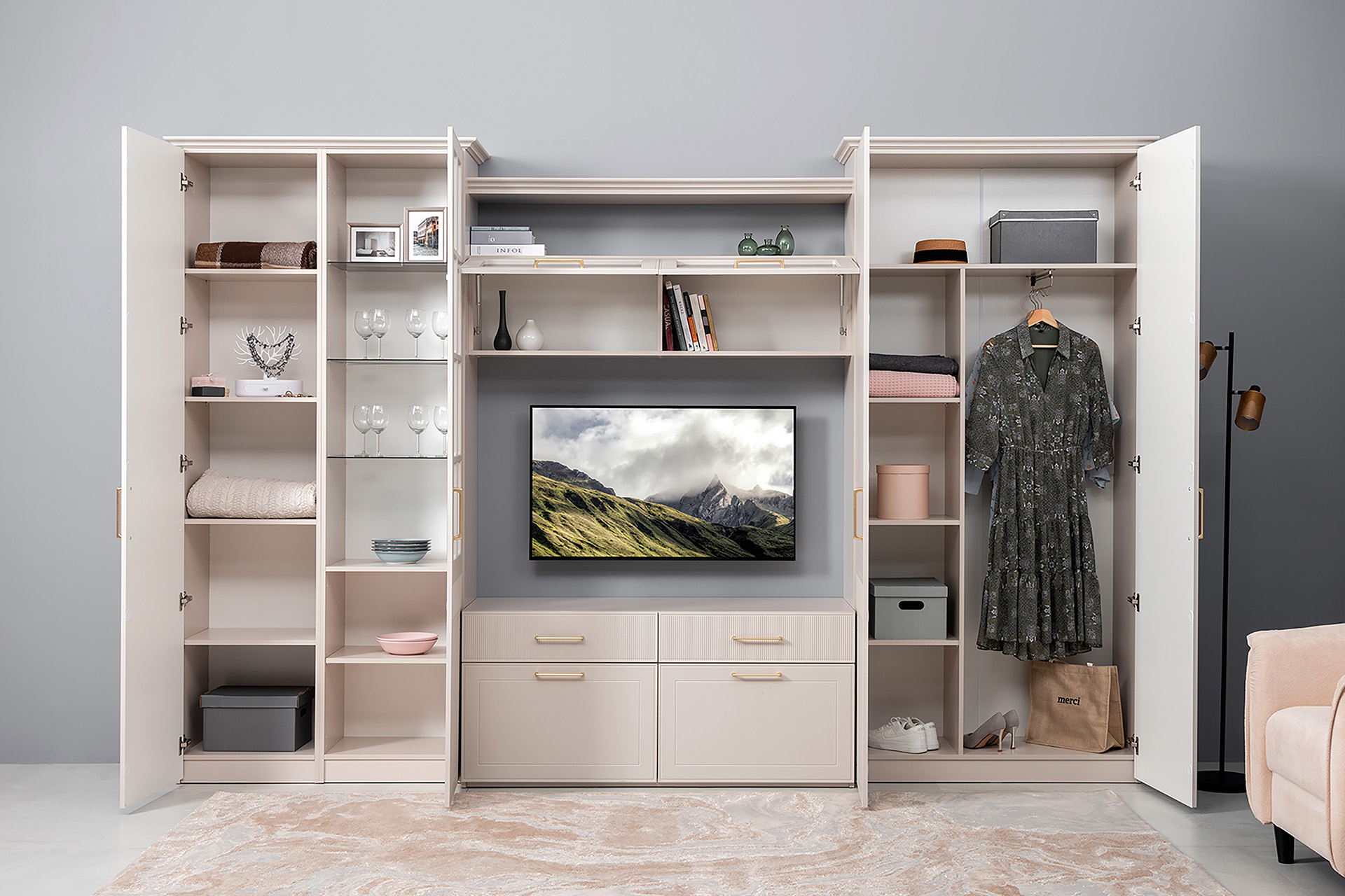 Тумба под ТВ в гостиную 13.267.03 белый PE шагрень, альберо, милк софт ПВХ